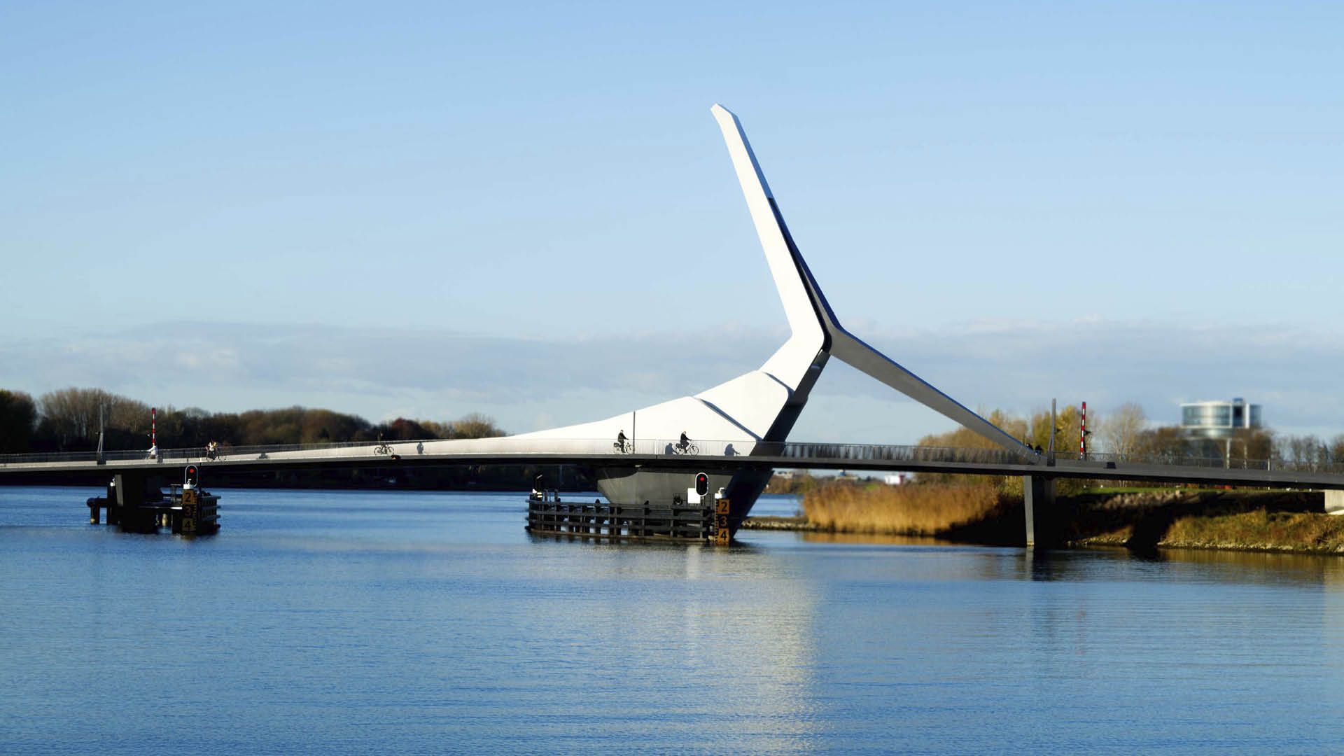 Le pont Prince Claus est un pont mobile pour vélos et piétons de 141 m de long qui enjambe la rivière Wantij et relie le centre historique de Dordrecht (NL) au nouveau quartier résidentiel 'Stadswerven'.