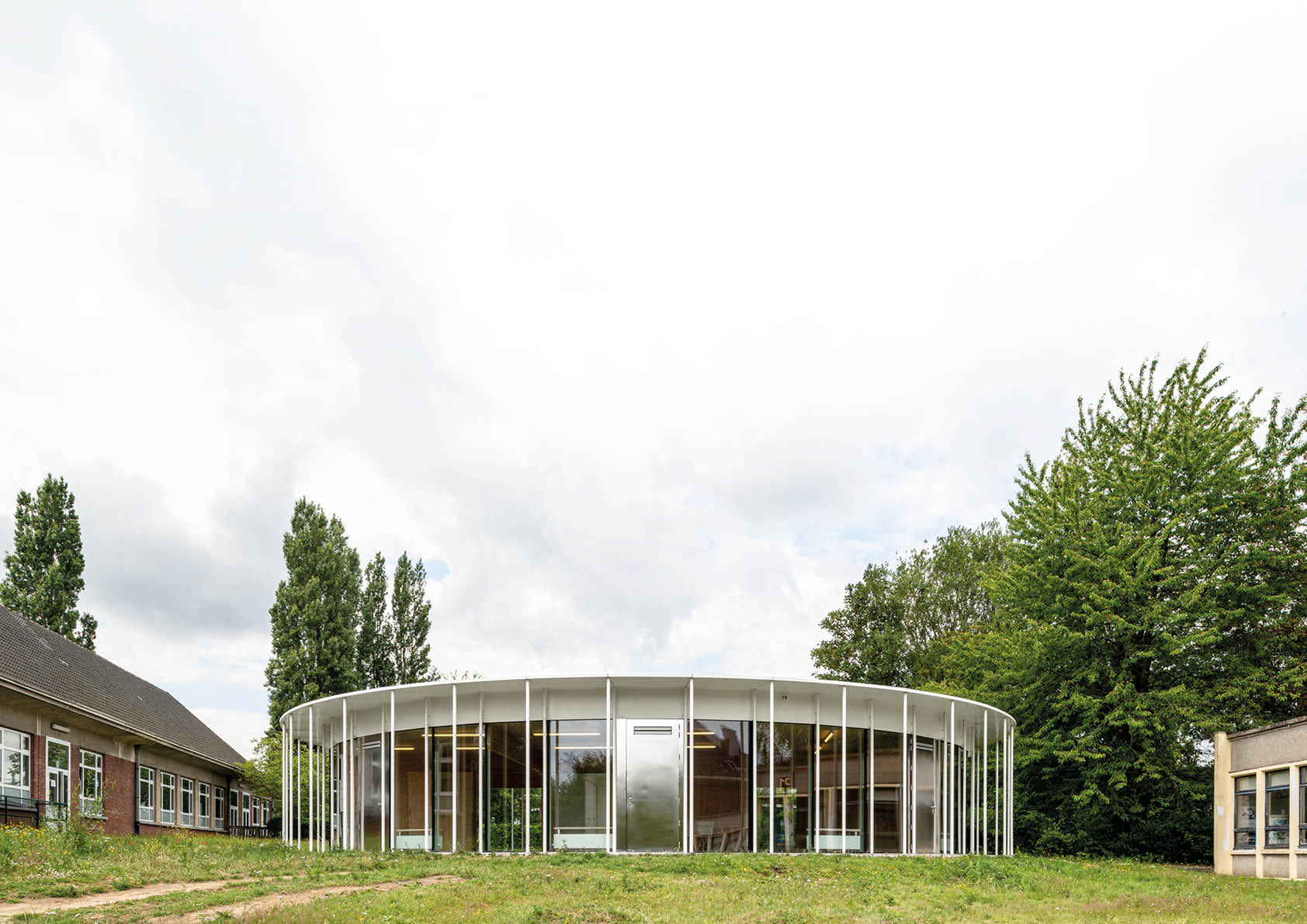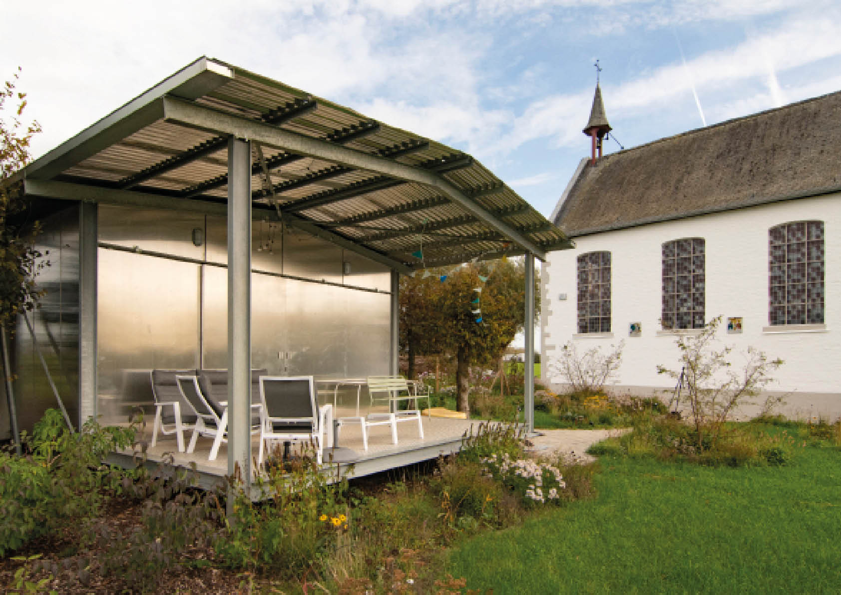 Een zeventiende-eeuwse kapel midden in een veld in de Denderstreek wordt herbestemd tot woning. Een lichte staalstructuur wordt tegen de oostelijke wand geschoven en maakt de royale ruimte bewoonbaar.