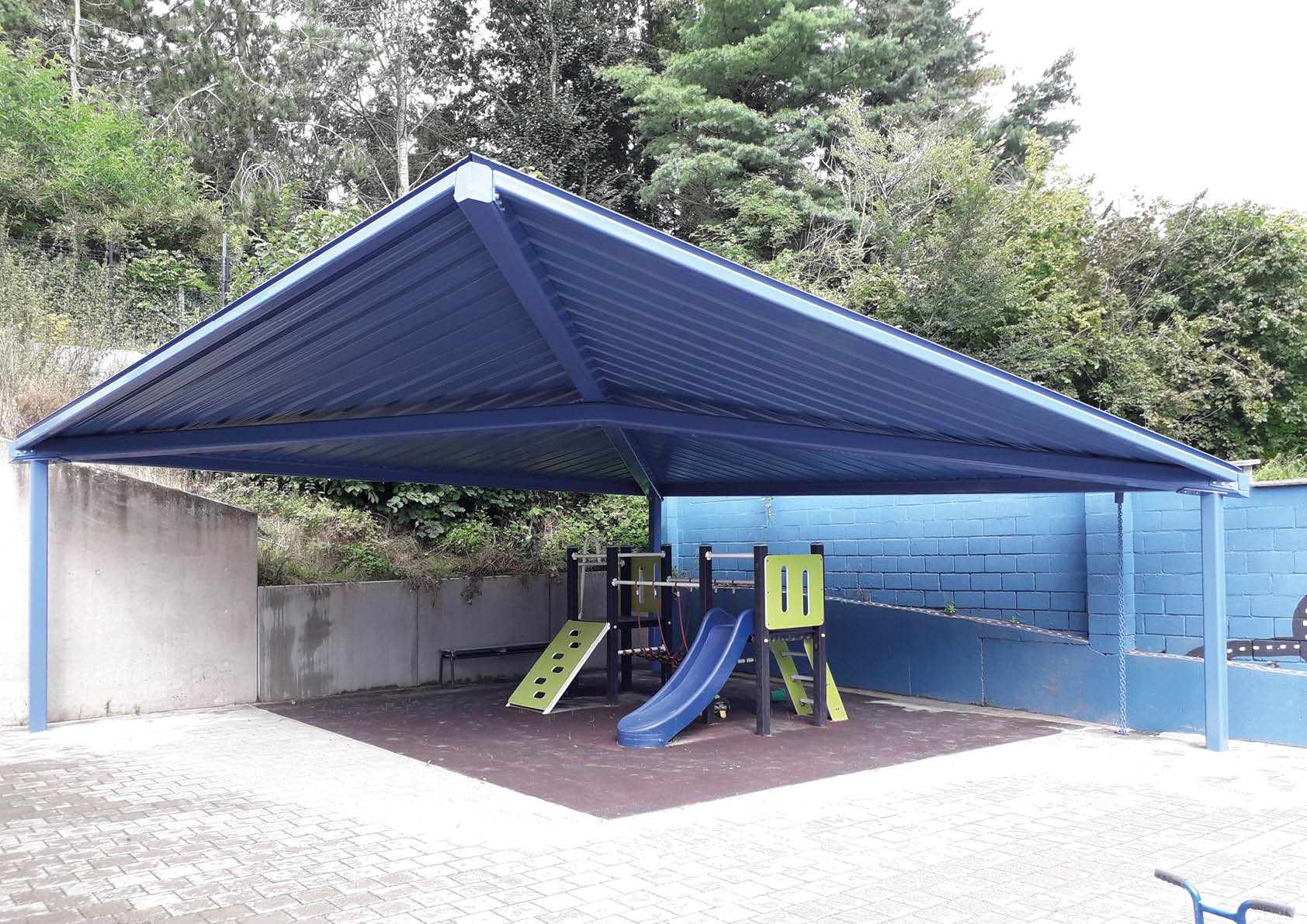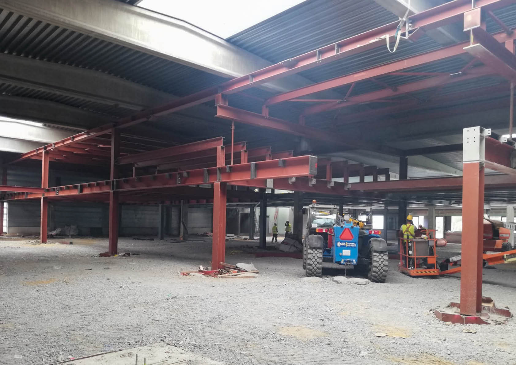 Lichte staalstructuur voor nieuwe dubbelhoge vestibules.